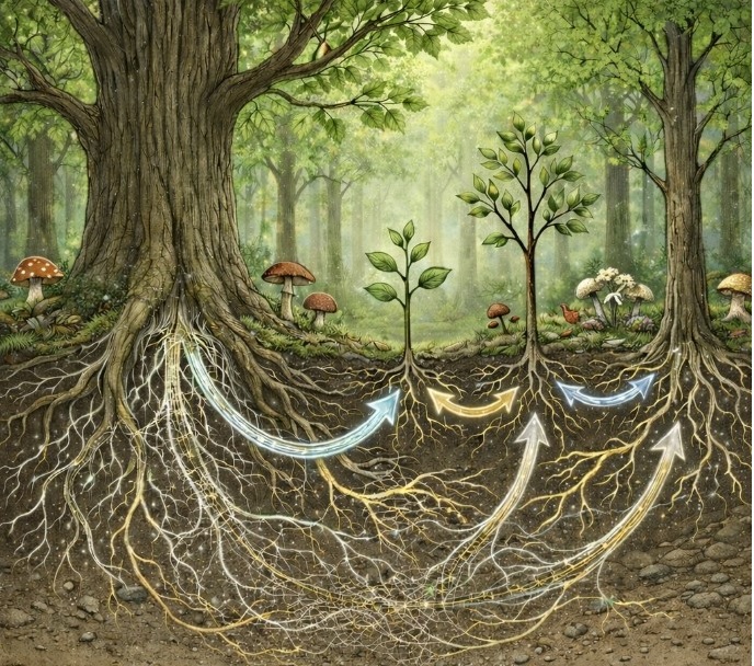 Amikor az erdőben sétálunk, hajlamosak vagyunk a fákat különálló egyedeknek látni, pedig maga az erdő egy összetett, egymásra hangolt rendszer. A felszín alatt egy elképesztő, gombafonalakból álló hálózat, az ún. Wood Wide Web („erdei internet”) köti össze őket. Ezen a hálózaton keresztül a fák nemcsak tápanyagot cserélnek, de „beszélgetnek” is: figyelmeztetik egymást a veszélyre és támogatják beteg szomszédjaikat, utódaikat.